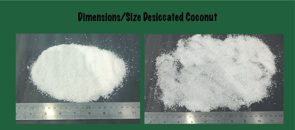 Desiccated Coconut High Fat Fine Grade is the quality of Desiccated Coconut where 100% passes through a 1.7 mm sieve and no more than 15% remains on the 1.4 mm sieve.